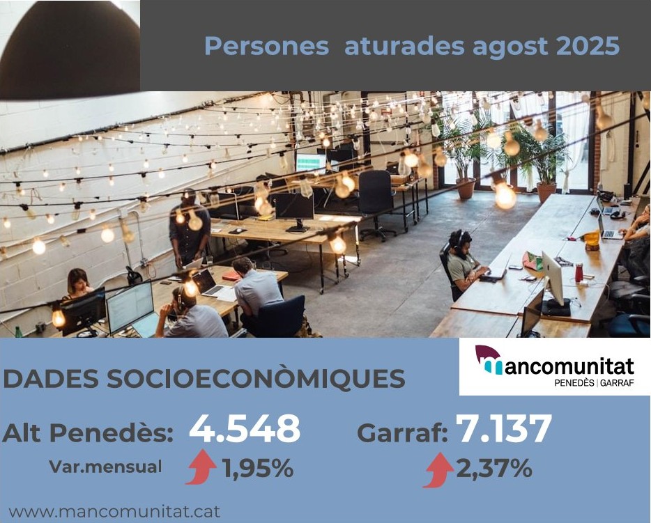 S’ha publicat l’informe amb les dades del mercat de treball a l’Alt Penedès i el Garraf corresponent al mes d’agost. El mercat laboral mostra l’efecte estacional de l’estiu: més atur i menys contractació. Tot i aquest repunt mensual, les dues comarques mantenen una millora interanual, amb menys persones a l’atur que fa un any.