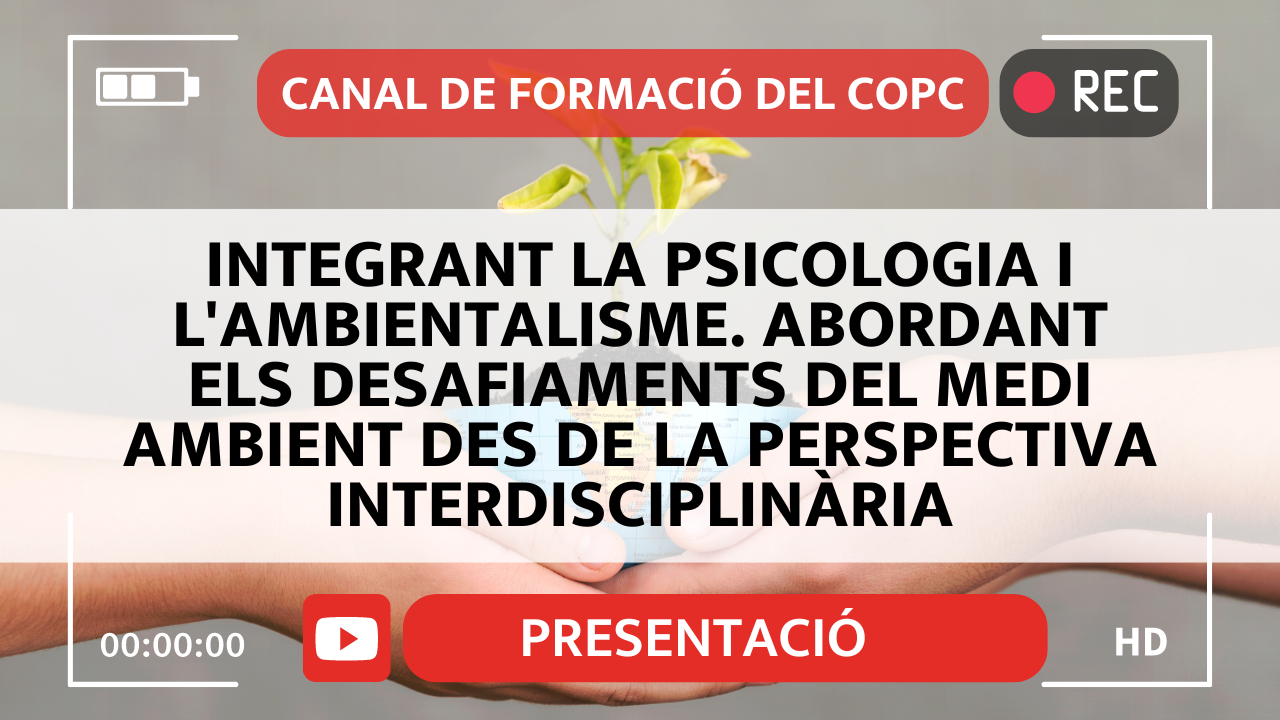 Ja tens disponible la presentació de grup de treball Integrant la psicologia i l'ambientalisme. Abordant els desafiaments del medi ambient des de la perspectiva interdisciplinària al canal de Youtube del COPC