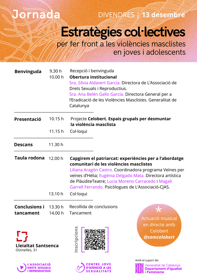El Centre Jove d’Atenció a les Sexualitats et convida a participar a la jornada gratuïta Estratègies col·lectives per fer front a les violències masclistes en joves i adolescents