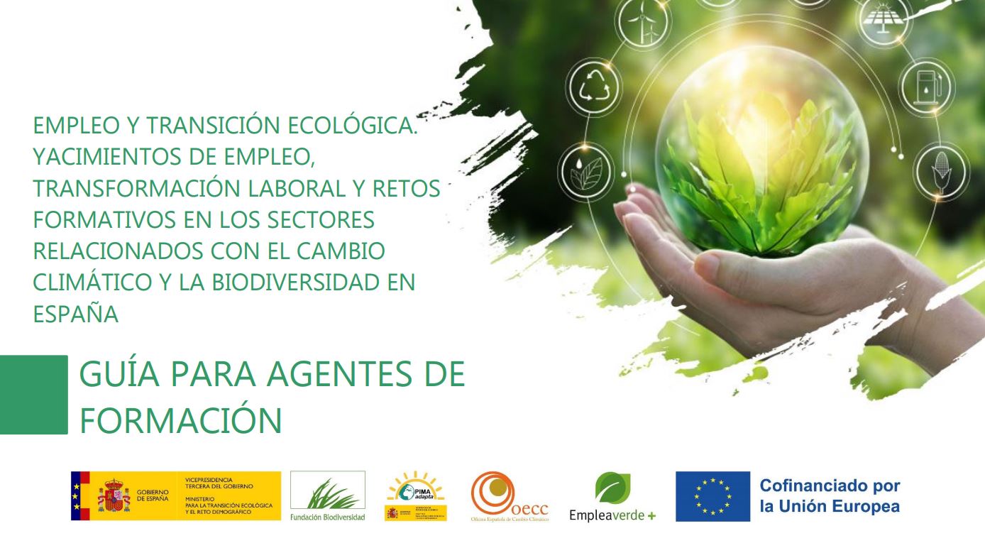 En el marco del Estudio "Empleo y Transición Ecológica" se ha elaborado una "Guía para los agentes de formación" que recoje orientaciones para ayudar a planificar y diseñar programas formativos que den respuesta a los retos de la transición ecológica. |