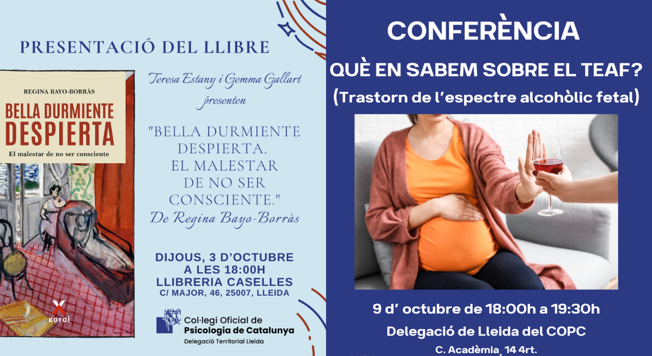 El dia 3, la presentació del llibre Bella durmiente despierta. El malestar de no ser consciente, de Regina Bayo-Borràs, i el dia 9 la conferència Què en sabem sobre el TEAF? T'hi esperem!