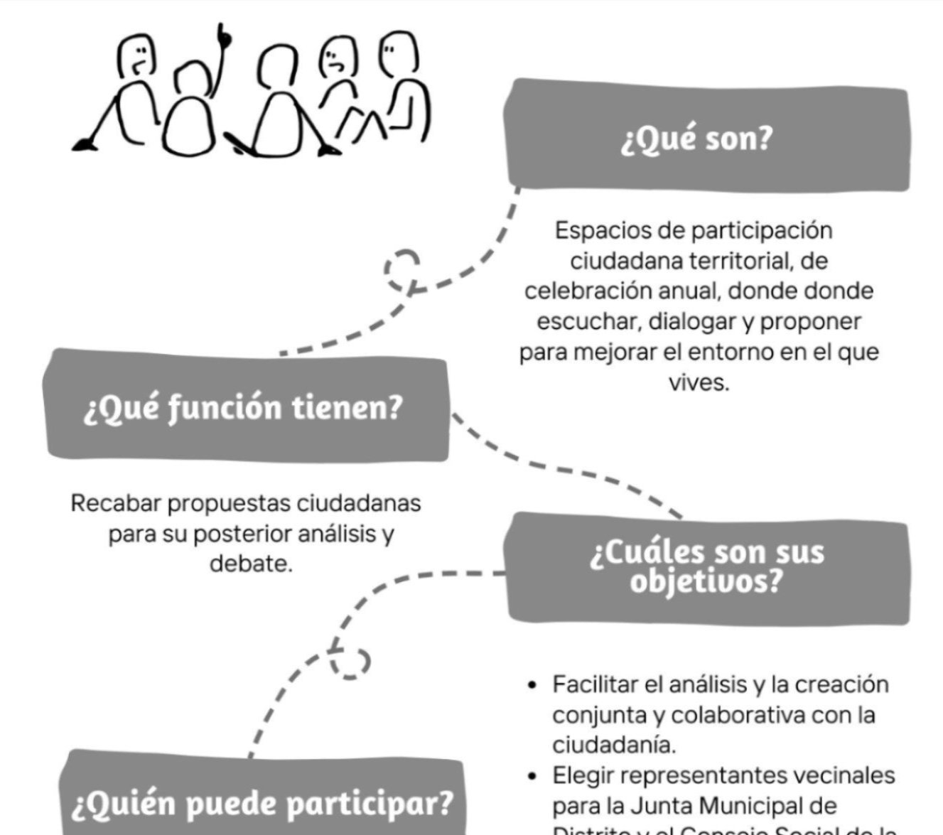 ¿Tienes ideas que pueden mejorar el distrito en el que vives? Participa en la asamblea de tu distrito, un espacio de encuentro de quienes como tú, habitan la ciudad, agentes sociales y representantes municipales, donde escuchar, dialogar y proponer acciones y mejorar tu entorno más próximo.