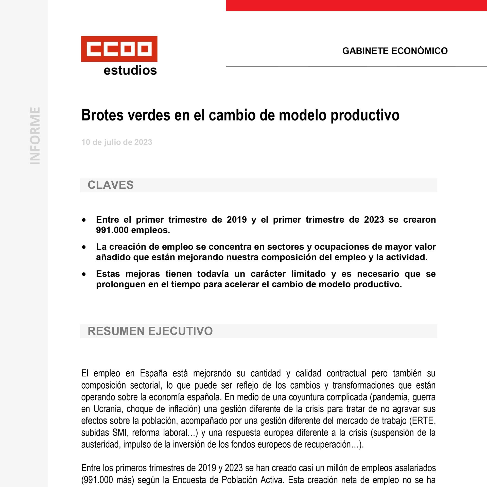Brotes verdes en el cambio de modelo productivo. CCOO