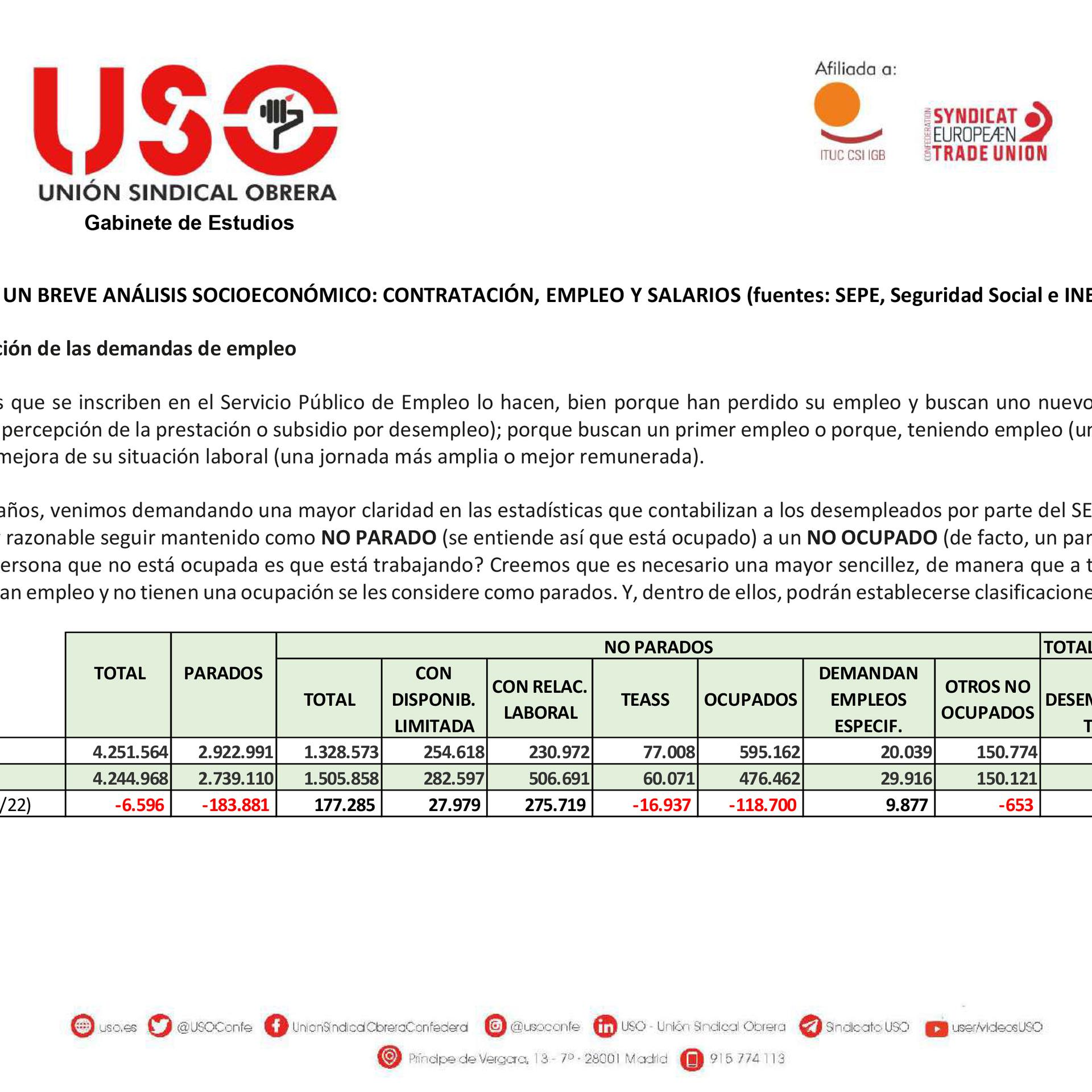 Breve análisis socioeconómico. USO