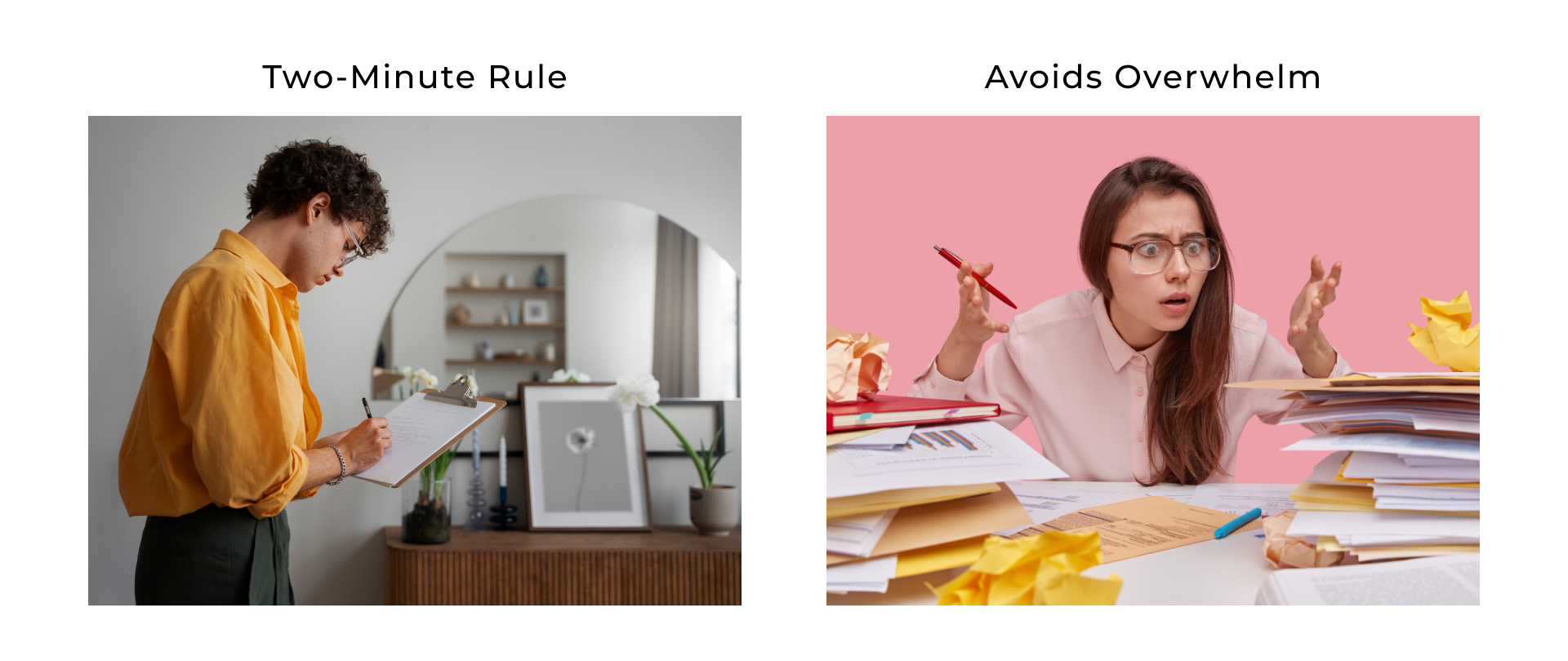 If you come across a task that can be completed in two minutes or less, do it immediately. It's amazing how many small tasks can accumulate and create clutter or add to your to-do list. By tackling these quick tasks right away, you'll prevent them from piling up and making you feel overwhelmed. This simple rule can help you maintain a more organized and efficient daily routine. |